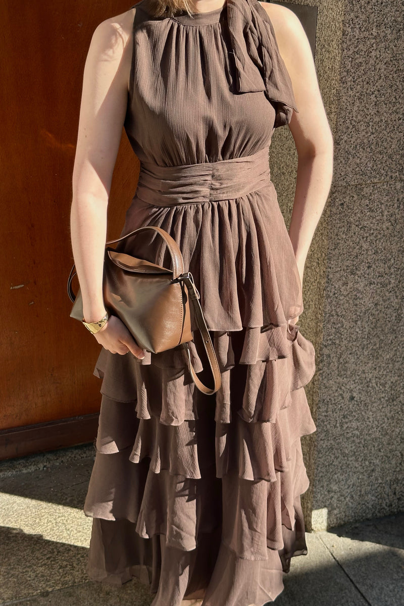 Marli Solid Chiffon Jurk - Bruin