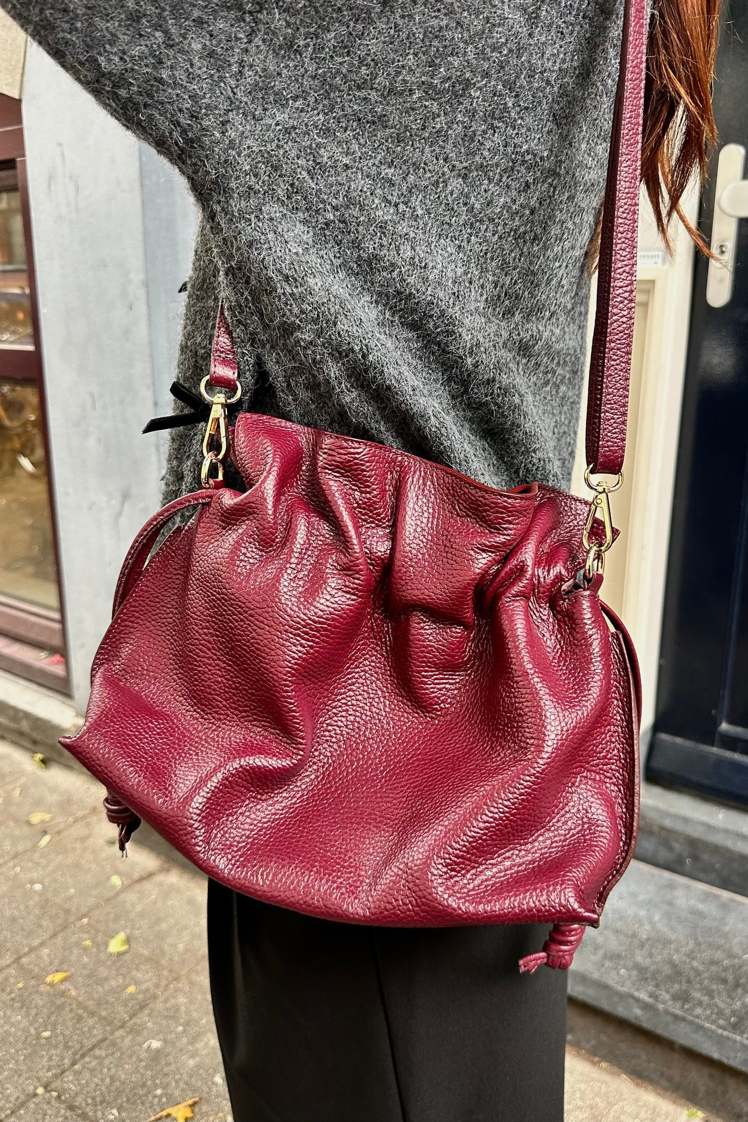 De Lena Tas van UNC Wardrobe is een bucket bag met een lang schouderhengsel. Voorzien van een ruim hoofdvak en een klein binnenvakje met rits. Sluit gemakkelijk met een magnetische sluiting – praktisch en stijlvol in één.