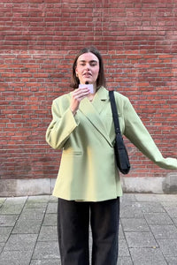 De Jasmin Blazer is een oversized blazer in groen. De schuine sluiting geeft de blazer een opvallende, moderne look met karakter.