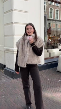 De Kevini Faux Fur Gilet van Neo Noir is een heerlijk zacht gilet in een lichte tint. Het model valt wat ruimer voor een nonchalant maar toch chique look. Perfect om elke outfit een luxe touch te geven.