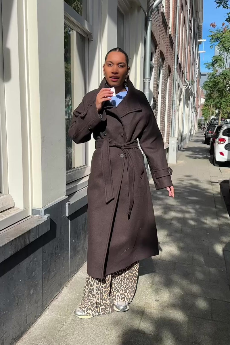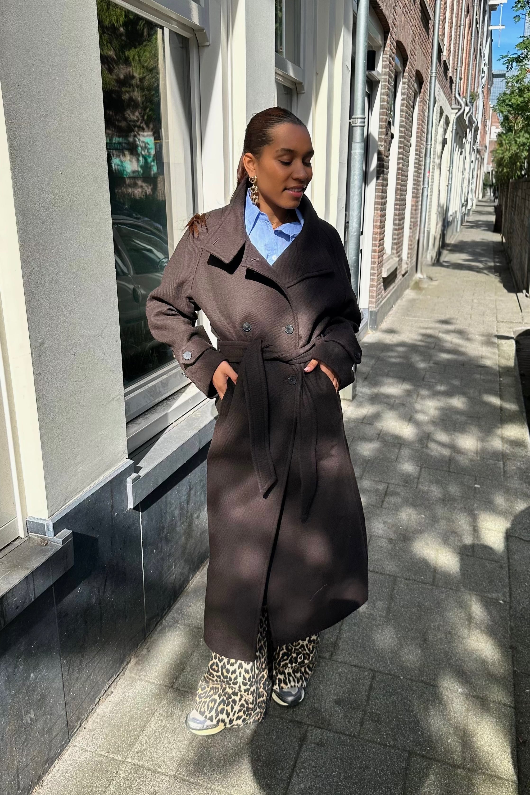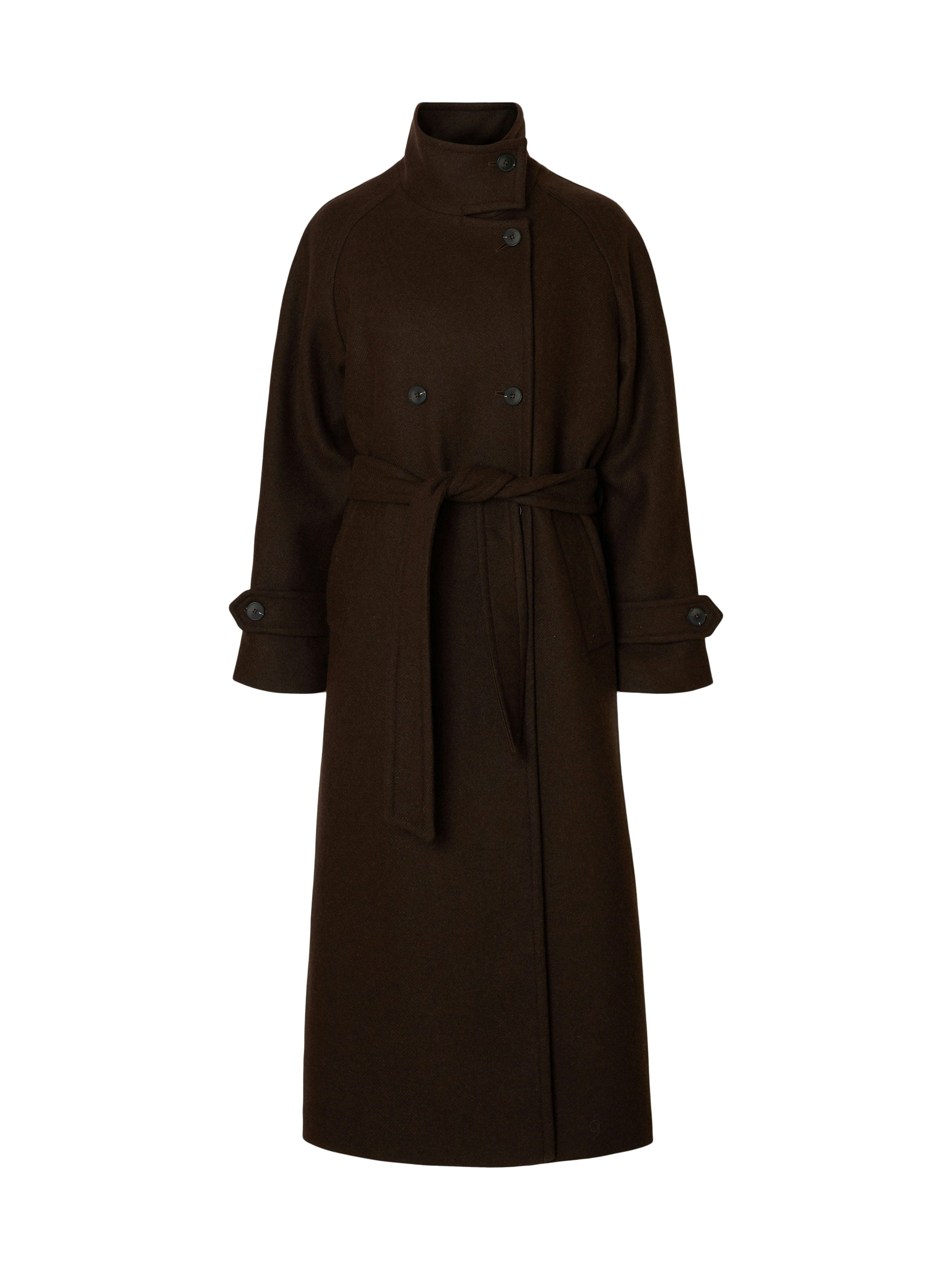 De SLFMadeline Manteco Mantel van Selected Femme is een lange mantel met een hoge kraag. De lange mouwen hebben een polsband en de taille wordt geaccentueerd met een ceintuur. Elegant, warm en krachtig in één.