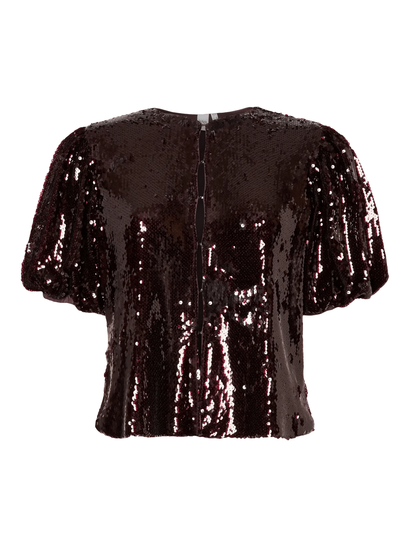 De YASRoyalina Blouse van YAS is een korte top met pofmouwen en bordeauxrode pailletten. Voorzien van kleine sluitingen aan de voorkant. Stoer, opvallend en precies genoeg glam!