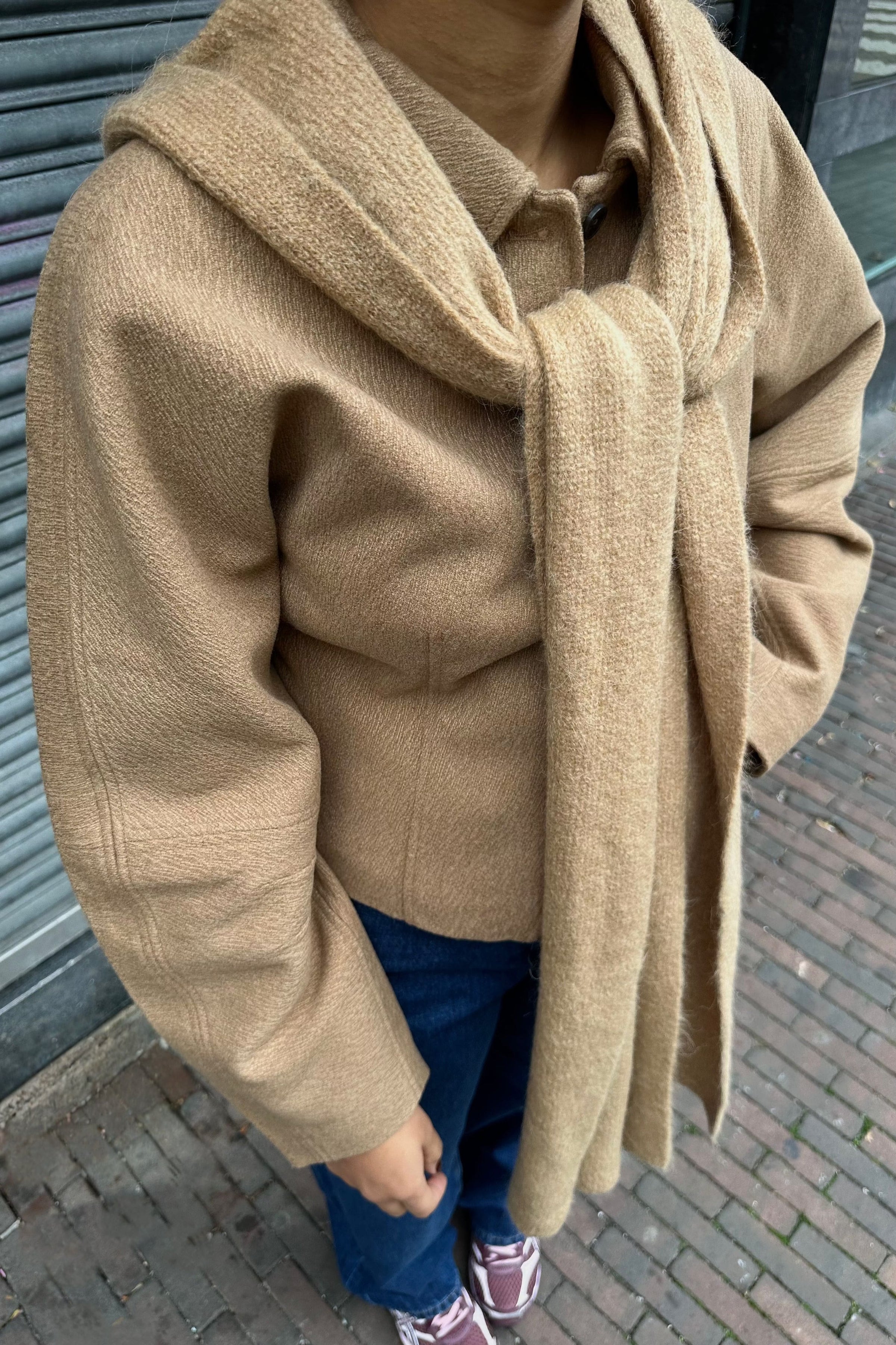 De MSCH Milania Hope Hood Sjaal van Moss Copenhagen is een sjaal met capuchon in zachte camel- en beigetinten. Knus, stijlvol en praktisch – houdt nek én hoofd warm met een modieuze twist.