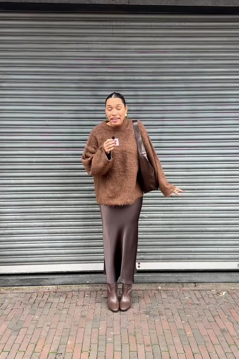 Vicky Satijnen Rok - Donker Bruin