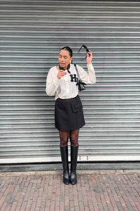 Het Drift shirt van Haute L’Amitié is een navy mesh longsleeve met een sportieve V-hals. Op de borst prijkt een groot, contrasterend ‘HL’-logo in varsity stijl, en onderaan zit een subtiel merklabel. Een statement piece dat streetstyle en high fashion moeiteloos combineert.