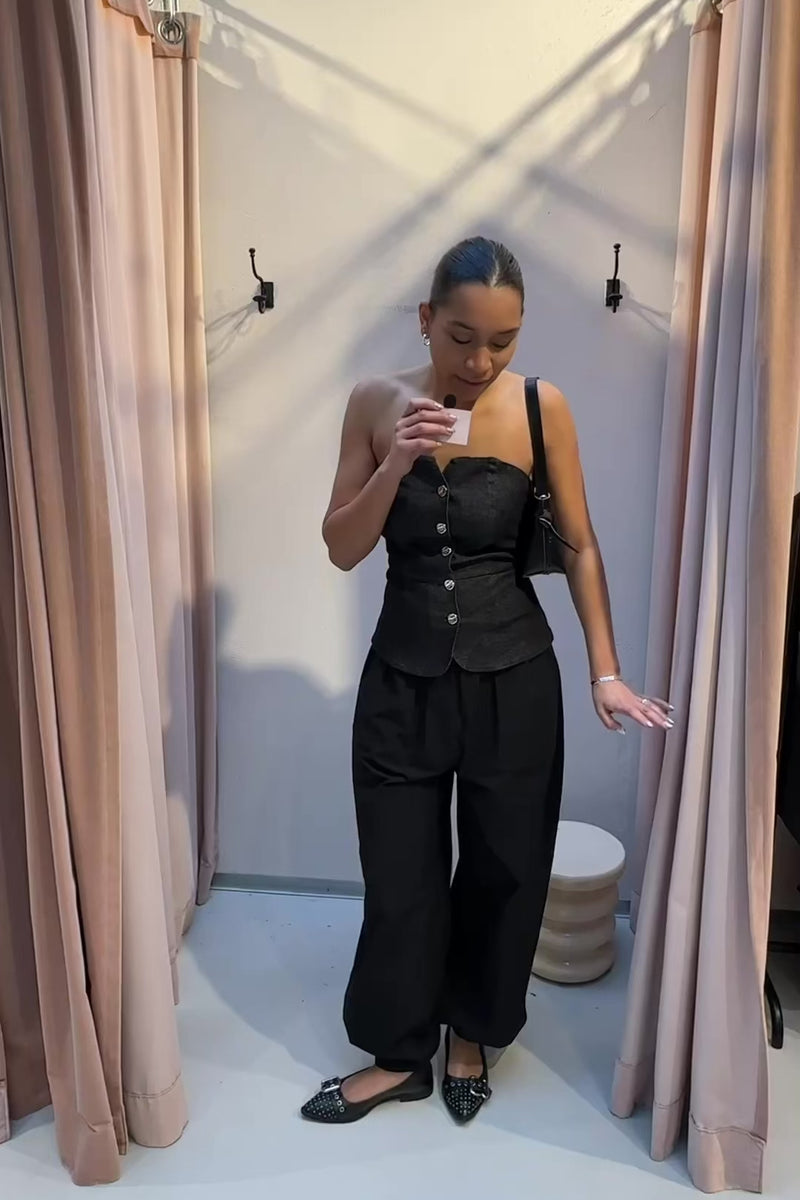 De HelimaCC Corsage Top van Co’Couture is een zwarte corset top met knopen aan de voorkant. De stevige, denimachtige stof geeft de top een stoere en krachtige uitstraling.
