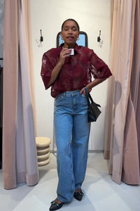De MSCH Lettiche blouse van Moss Copenhagen is een rode, see-through blouse met subtiele bloemenmotieven in de stof verweven. Het model heeft korte mouwen en een iets kortere lengte, waardoor hij speels en luchtig oogt. Ideaal om laag over een topje te dragen voor een vrouwelijke, trendy look.