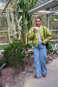 • Lynese draagt een maat 29 en is 175 cm lang.
