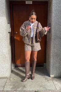 De Saar Korte Broek van Studio Amaya is de perfecte match bij de Fleur Bomber. Met de hoge taille en dezelfde kleurrijke glitterstof straalt ‘ie net zoveel lef als stijl uit. Een set die je niet snel vergeet.