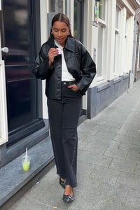 De YAS Noelle Studded jeans van YAS is een donkergrijs-zwarte denim met een edgy twist. De tailleband is versierd met glanzende studs, die in een schuine lijn ook over de pijpen doorlopen. Een statement jeans die elke outfit direct een stoere upgrade geeft.