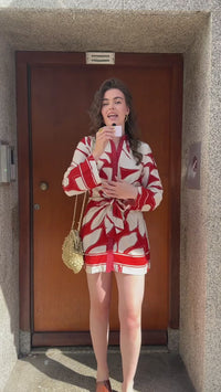 De Arlette Mini Jurk is een korte jurk met lange mouwen en een opvallende rood/creme print. De strik om de taille geeft ‘m een vrouwelijke, speelse touch. Perfect voor wie kort, krachtig én stijlvol wil gaan.