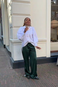 De Baggy Track Tall Pants van Haute L’Amitié is een lange trackpants in een diepe groene kleur. Voorzien van strepen langs de zijkant en een elastische tailleband. Comfortabel en sportief met een relaxte fit.