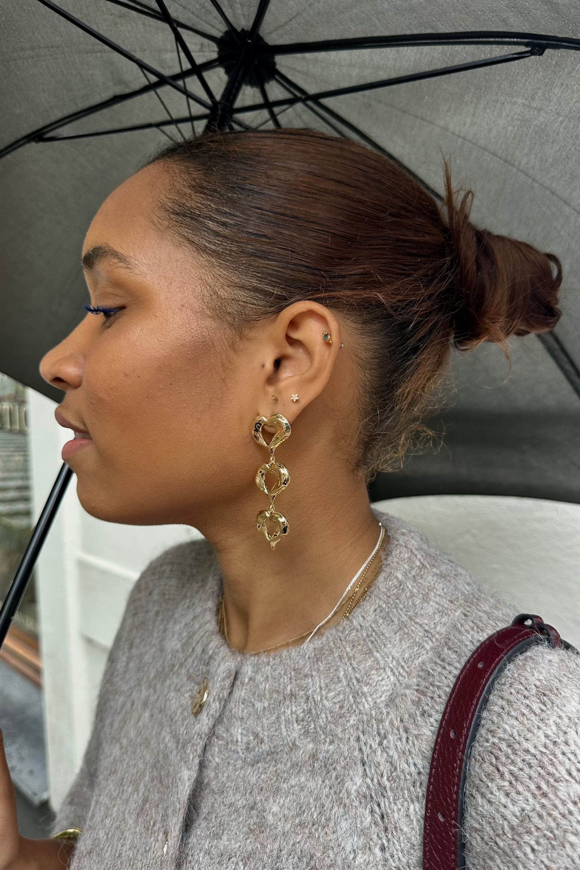 Deze gold-plated statement oorbellen zijn een echte eyecatcher. Met hun organische hartvorm en 70 mm lengte stralen ze een luxe boho vibe uit. Gemaakt van 98% gerecycled materiaal – stijlvol én verantwoord.
