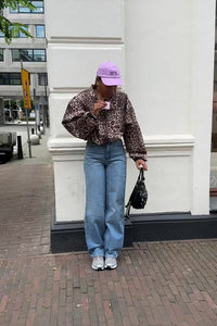 De Feline Jacket van Studio Amaya is een luipaardprint jas met lange mouwen en een stoere opstaande kraag. Dankzij het aantrekkoord onderaan maak je ‘m makkelijk meer cropped voor een speels effect. Een wilde, vrouwelijke statement piece.