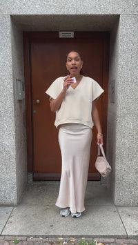De Barcelona Sweater is een korte mouwen trui met een casual V-hals, uitgevoerd in een zachte joggerstof. Verkrijgbaar in beige en grijs voor een easy, moderne look. Draag ‘m los of layer ‘m voor een sporty-chique vibe.