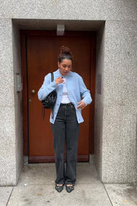• Lynese draagt maat S(36) en is 175 cm lang. Het vest valt oversized, met een maat M of L kun je alsnog maat S bestellen.