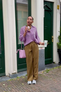 De Anaya Polo Top van Edited is een gehaakte top met korte mouwen en een klassieke kraag. Voorzien van parelmoer knoopjes voor een subtiele, chique touch. In lila – luchtig, vrouwelijk en helemaal zomerwaardig.