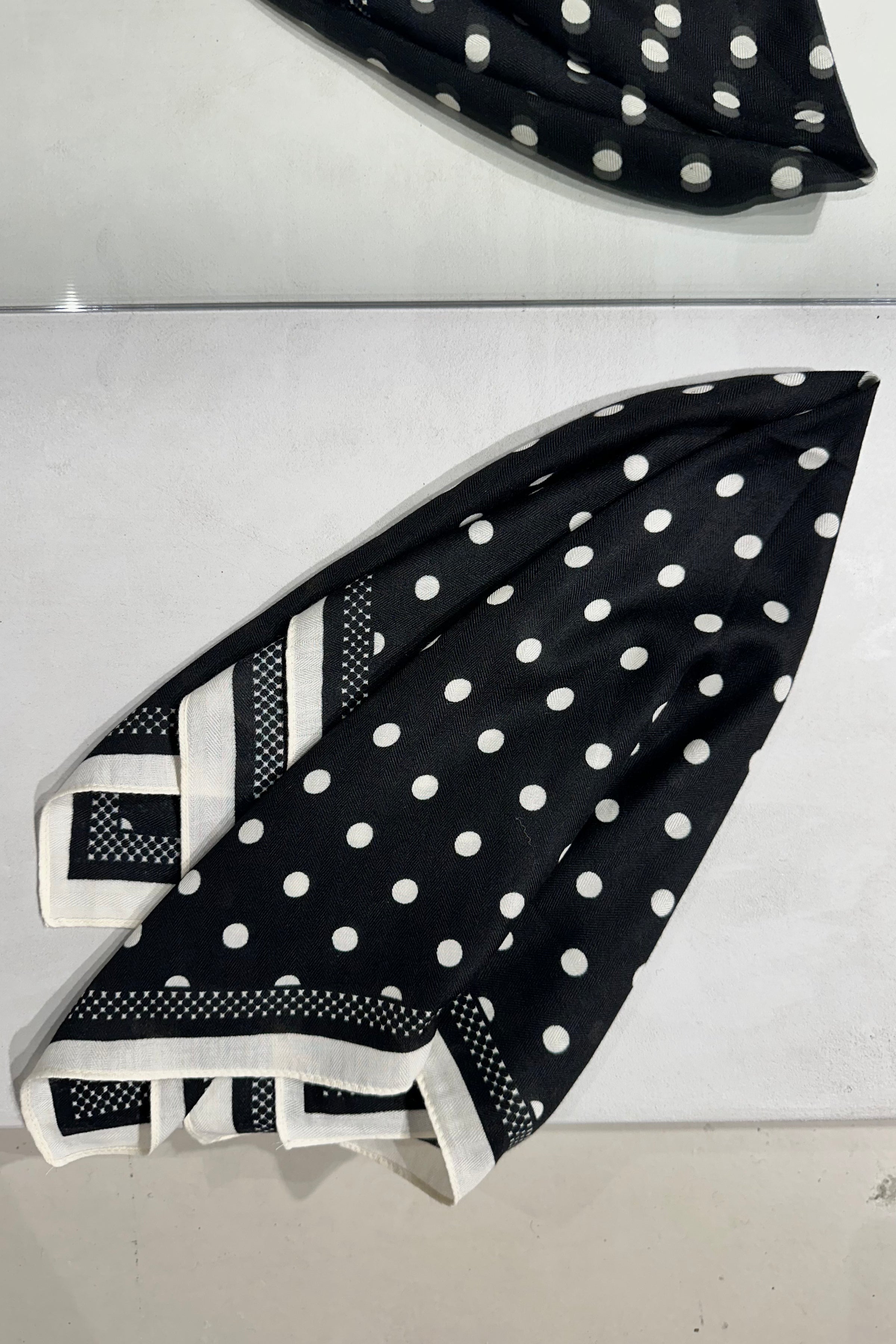 De Bandana Polka Dot is een luchtig viscose sjaaltje met een speels stippenpatroon. Verkrijgbaar in zwart met witte stippen en witte bies, of juist andersom. Een tijdloze accessoire die elke look afmaakt.