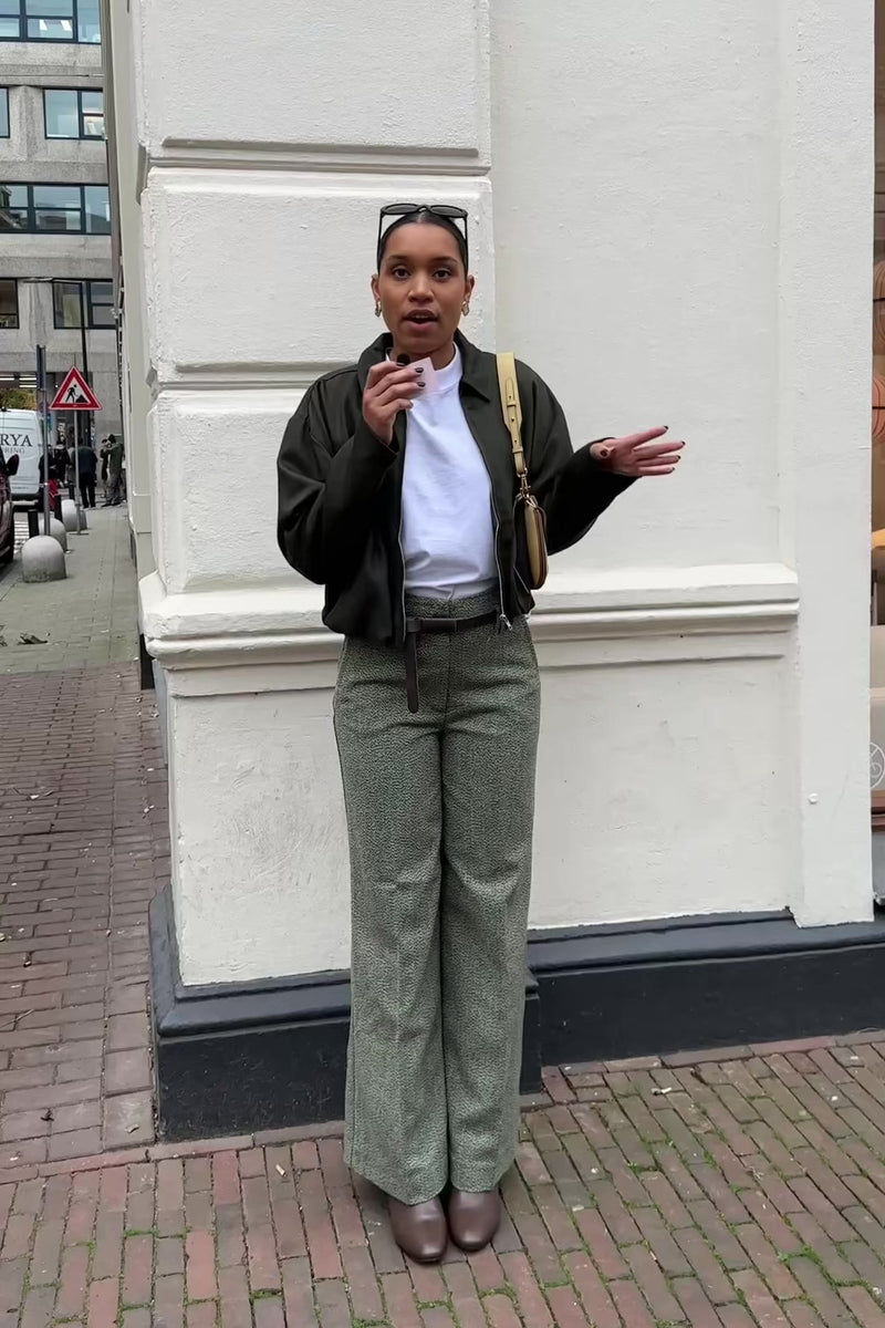 De Bliss Pantalon van CKS is een high waist, wijde pantalon in groen met een subtiel all-over printje. Voorzien van een tailleband voor een comfortabele en flatterende fit. Elegant, maar met een speels detail voor net dat beetje extra.