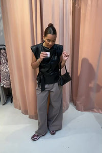 De GittCC Top van Co'Couture is een mouwloze top met geplooide details op de schouders en een riempje om de taille. Vrouwelijk, stijlvol en subtiel accentuerend.