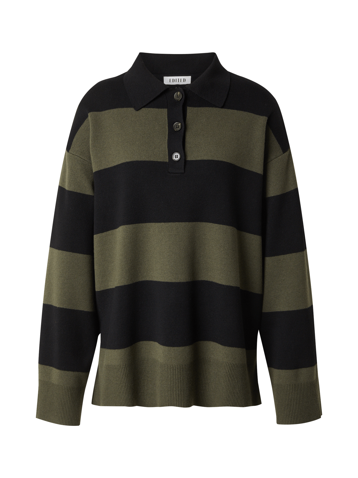 Casual meets cool: de Laiani trui van EDITED heeft een relaxed model met brede zwart-groene strepen. De klassieke polokraag en knoopsluiting geven ‘m een sportieve twist. Gemaakt van een zachte knit die je het liefst elke dag draagt.