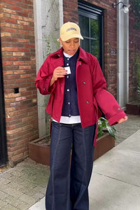 De MSCH Kishia Blix Jacket van Moss Copenhagen is een korte trenchcoat met een ceintuur in de taille voor een vrouwelijk silhouet. De dubbele kraag geeft het jasje een stoere twist. Verkrijgbaar in camel en rood voor twee totaal verschillende looks.