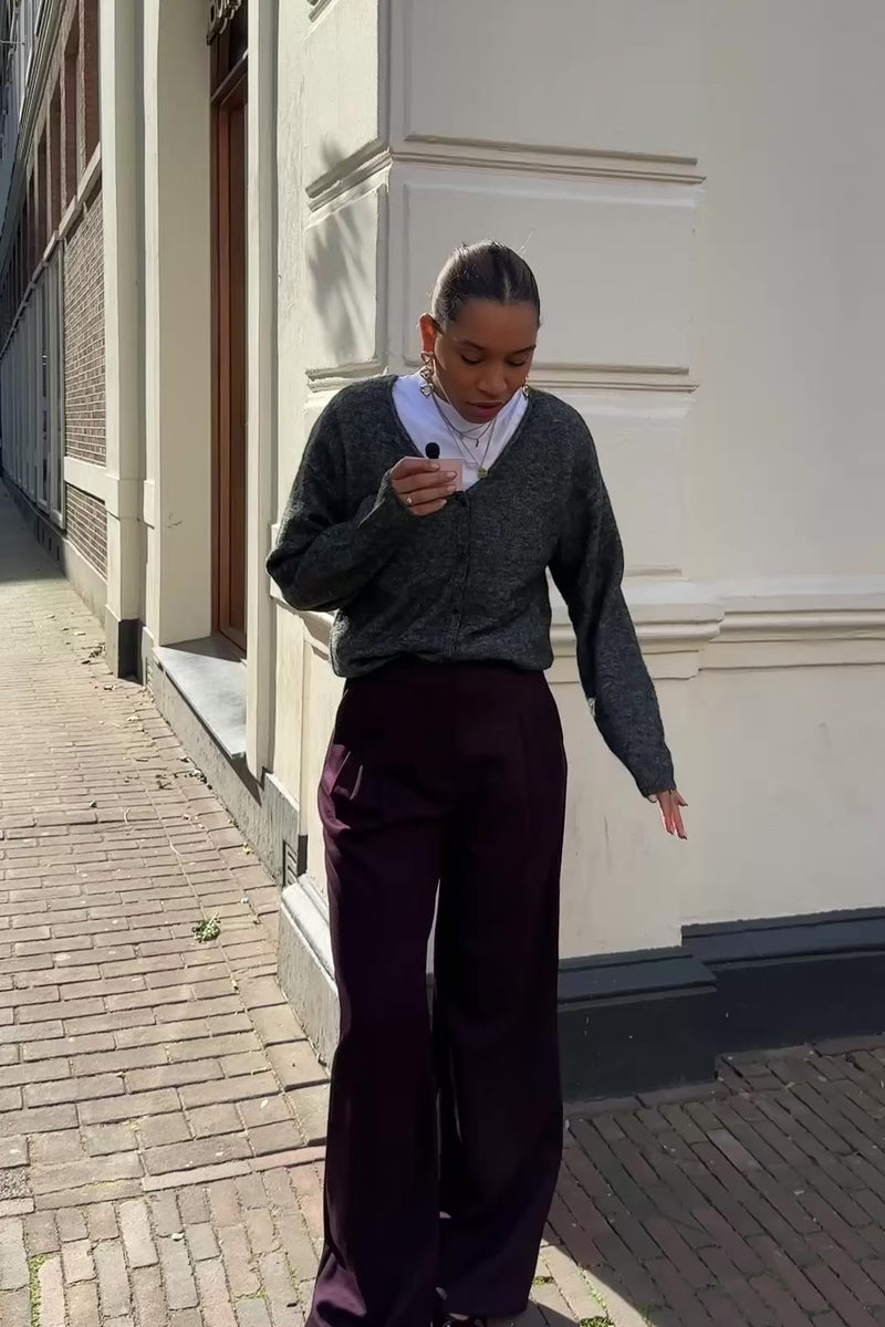 De MSCH Milania Hope Vest van Moss Copenhagen heeft lange mouwen, een V-hals en fijne knoopjes. Je kunt ’m klassiek als vest dragen of omgekeerd voor een verrassend open rugdetail.