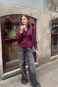 PoppyCC Eyelet Tie Bouse - Wijnrood