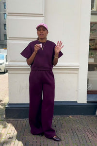 De Rafaella Sweater is een grove knit in jogger-stijl met korte mouwen en een hoge hals, uitgevoerd in diep bordeaux. Hij oogt stoer en relaxed, maar blijft vrouwelijk door de cropped fit. Perfect voor een sporty vibe met een elegante twist.