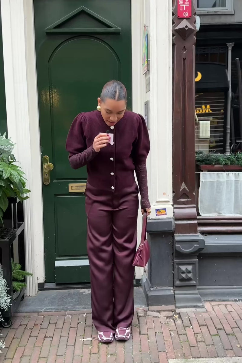 De Trudy Deco vest van Neo Noir is een bordeaux kortmouwig vest met opvallende parel kralenknopen. De zachte knit en decoratieve details geven ‘m een vrouwelijke, chique uitstraling. Perfect om casual te dragen of juist stijlvol te layeren.