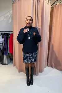 De YASFliky Rok van YAS is een korte donkerblauwe rok met een bloemenprint in verschillende kleur pailletten. Deze rok is natuurlijk super voor de feestdagen, maar met een donkerblauwe trui erop en hoge laarzen is hij ook top voor een dinertje!
