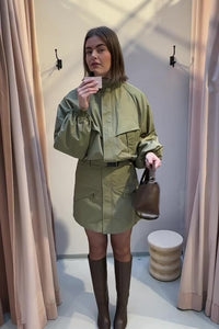 Het AloraCC Jacket van Co’Couture is een groen windjack met een ritssluiting en een stoere, sportieve uitstraling. Aan de onderkant zitten verstelbare touwtjes om het jasje naar wens strakker te maken voor een getailleerd effect.
