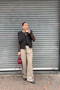 De Amina Split Pantalon van Co Couture is uitgevoerd in grijsbruin en heeft een sportieve zwarte-witte streep langs beide zijden. De elastische zwarte tailleband zorgt voor een comfortabele pasvorm. Een moderne pantalon die stijl en draagcomfort moeiteloos combineert.