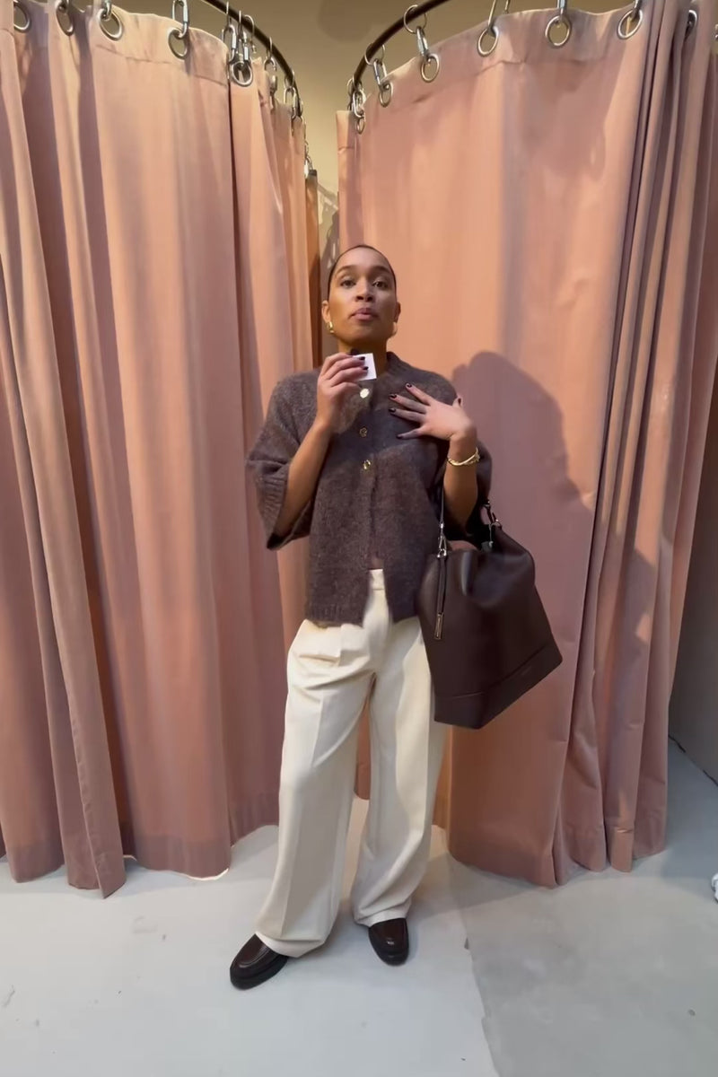 Het Benuta Fluffy Vest van Neo Noir is een wollen vest met 3/4 mouwen. De gouden knopen lopen van de bovenkant tot de taille voor een chique touch. Zacht, vrouwelijk en elegant tegelijk.