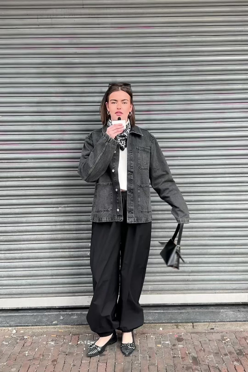 De Evon Worker Jas van Dr. Denim in Aged Black is een zwarte spijkerjas met een langere pasvorm en meerdere zakken aan de voorkant. Het stoere design maakt de jas veelzijdig: draag ’m als jas of stijl ’m als een top voor een edgy, casual look.