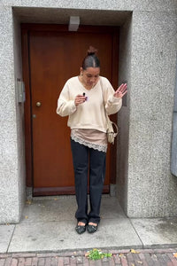 De Lacy Lace Top van UNC Wardrobe is een lange satijnen top met verfijnde kanten details aan de halslijn en een asymmetrische kanten band langs de onderkant. De glanzende stof valt soepel en geeft de top een elegante, vrouwelijke uitstraling met een sexy randje.