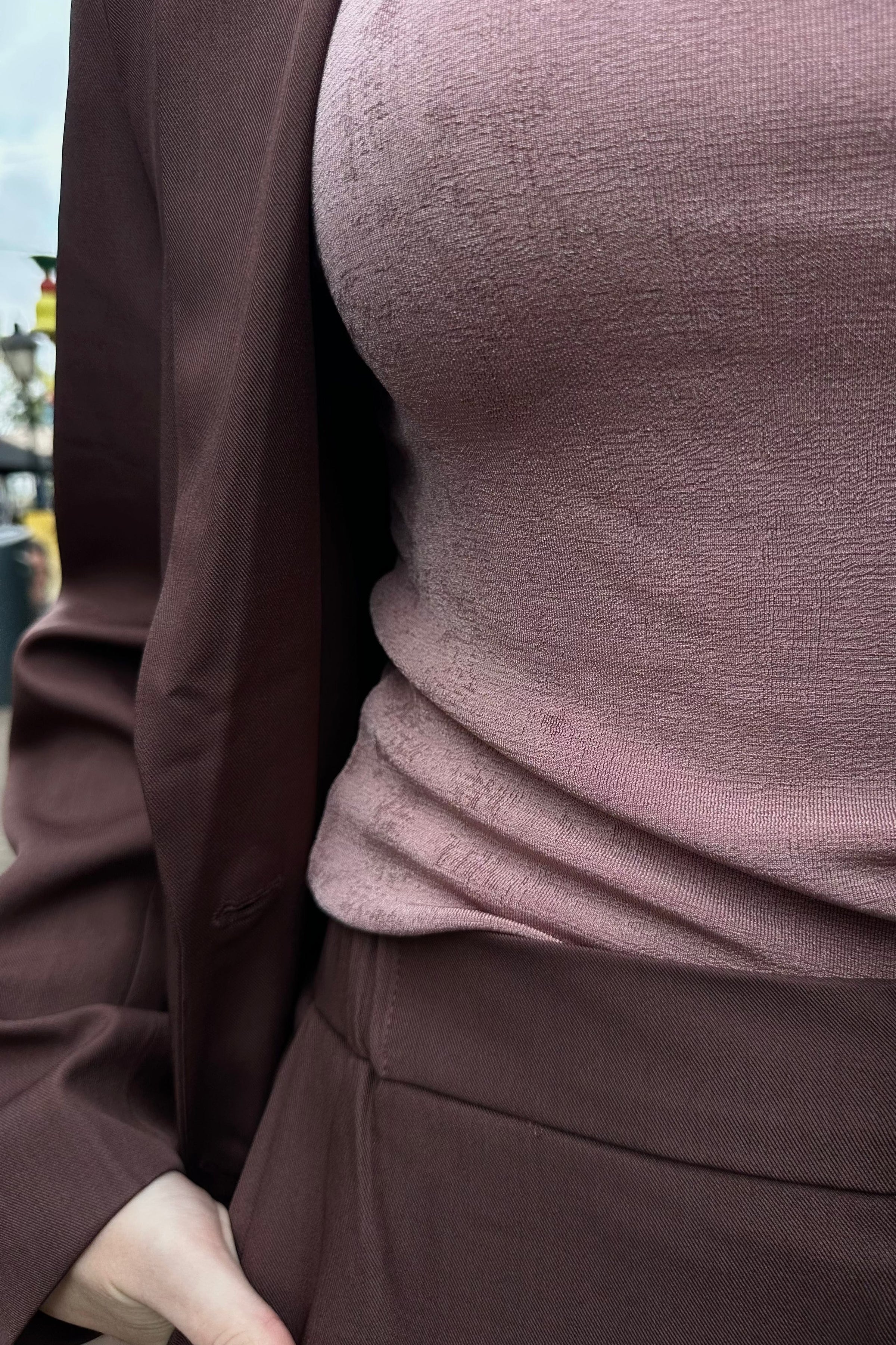 De Lara top van Amaya Amsterdam is een longsleeve met hoge hals en een subtiele glitter voor een delicate shine. Verkrijgbaar in zacht beige en lief roze, perfect als basisstuk met een elegante twist. Comfortabel, stijlvol en net een beetje extra.