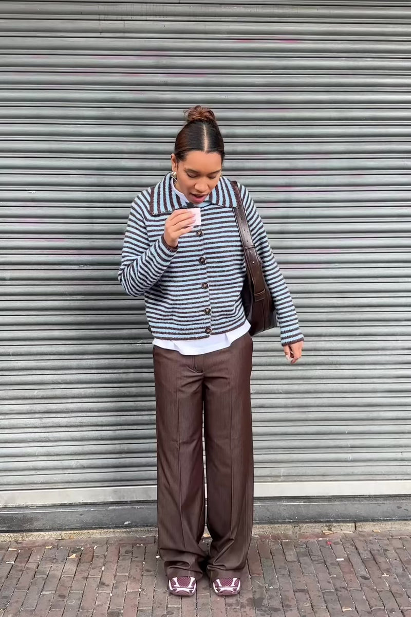 Marlies Gestreept Vest - Bruin/Blauw