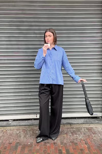 De Michelle Tailor Tie Tall Pants van Haute L'Amite is een zwarte wijde pantalon met een moderne, losse pasvorm. De veters als riem geven de broek een verfijnd, eigentijds detail en accentueren subtiel de taille.