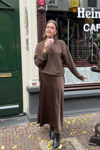 De MSCH Milania Hope Vest van Moss Copenhagen heeft lange mouwen, een V-hals en fijne knoopjes. Je kunt ’m klassiek als vest dragen of omgekeerd voor een verrassend open rugdetail.