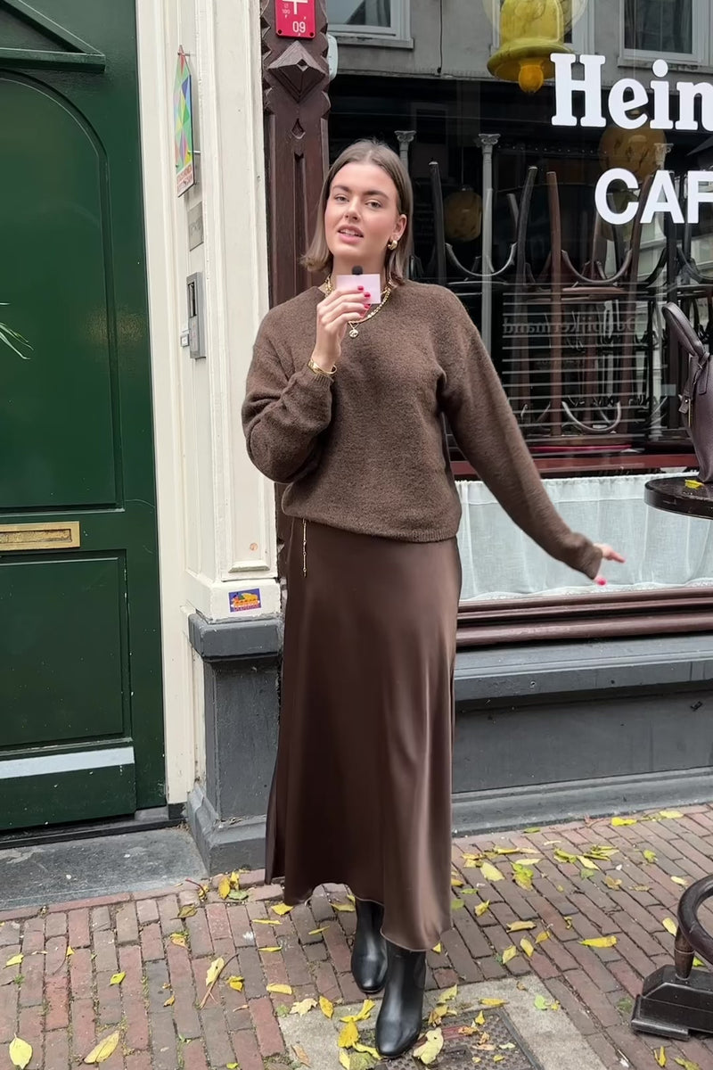 De MSCH Nicolette Ullas Satijnen Rok van Moss Copenhagen is een midi rok met een luxe satijnglans. Voorzien van een elastische tailleband voor een comfortabele fit. De diepe paars/bordeauxrode kleur geeft ‘m een chique, opvallende uitstraling.