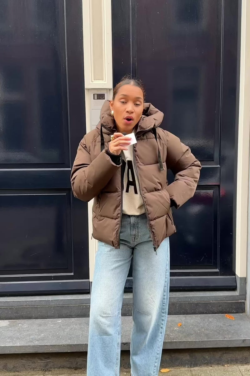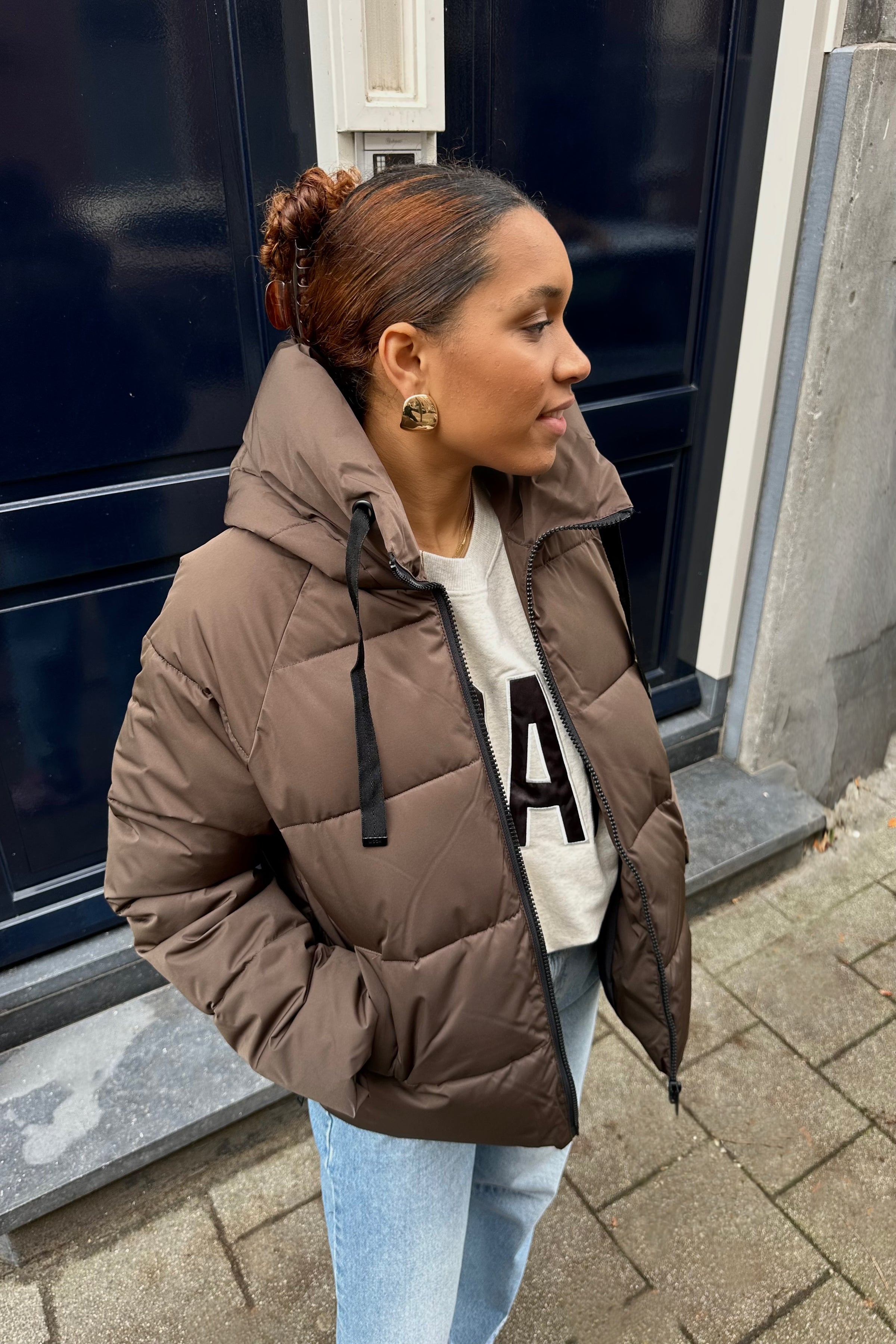 De MSCHPavinaria Korte Jas van Moss Copenhagen is een korte pufferjas in bruin met een zwarte ritssluiting en capuchon. Warm, stoer en perfect voor casual winterlooks.