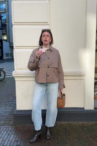 De MSCHSvada Jas van Moss Copenhagen is een bruin jasje met een trenchcoat-achtige uitstraling. De kraag kan zowel omhoog als omlaag gedragen worden, wat zorgt voor een veelzijdige en verzorgde look. Een tijdloos model met een moderne touch.