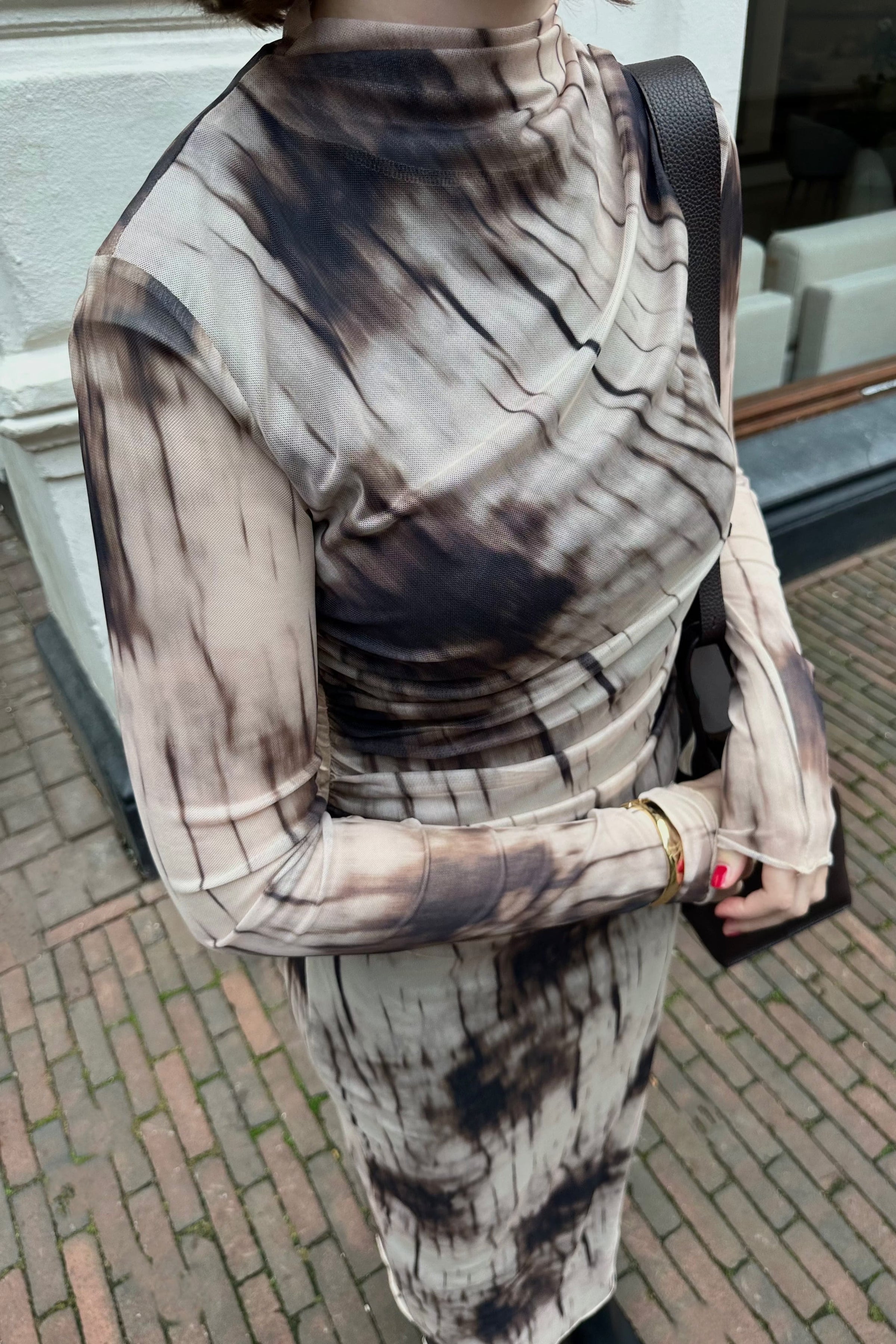 Onessa Faded Mesh Jurk - Bruin