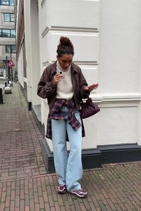 De Payton Jacket van Studio Amaya is een faux suède bomberjack met lange, wijde mouwen en een gouden ritssluiting. Zacht van buiten, stoer van snit — de perfecte mix van casual en chic.