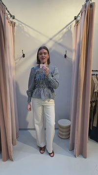 De Possa Gestreepte Blouse van Neo Noir is een donkerblauw-wit gestreepte blouse met een mooi geaccentueerde taille door elastisch smockwerk. Het silhouet oogt clean en geeft de blouse een moderne, verfijnde uitstraling.