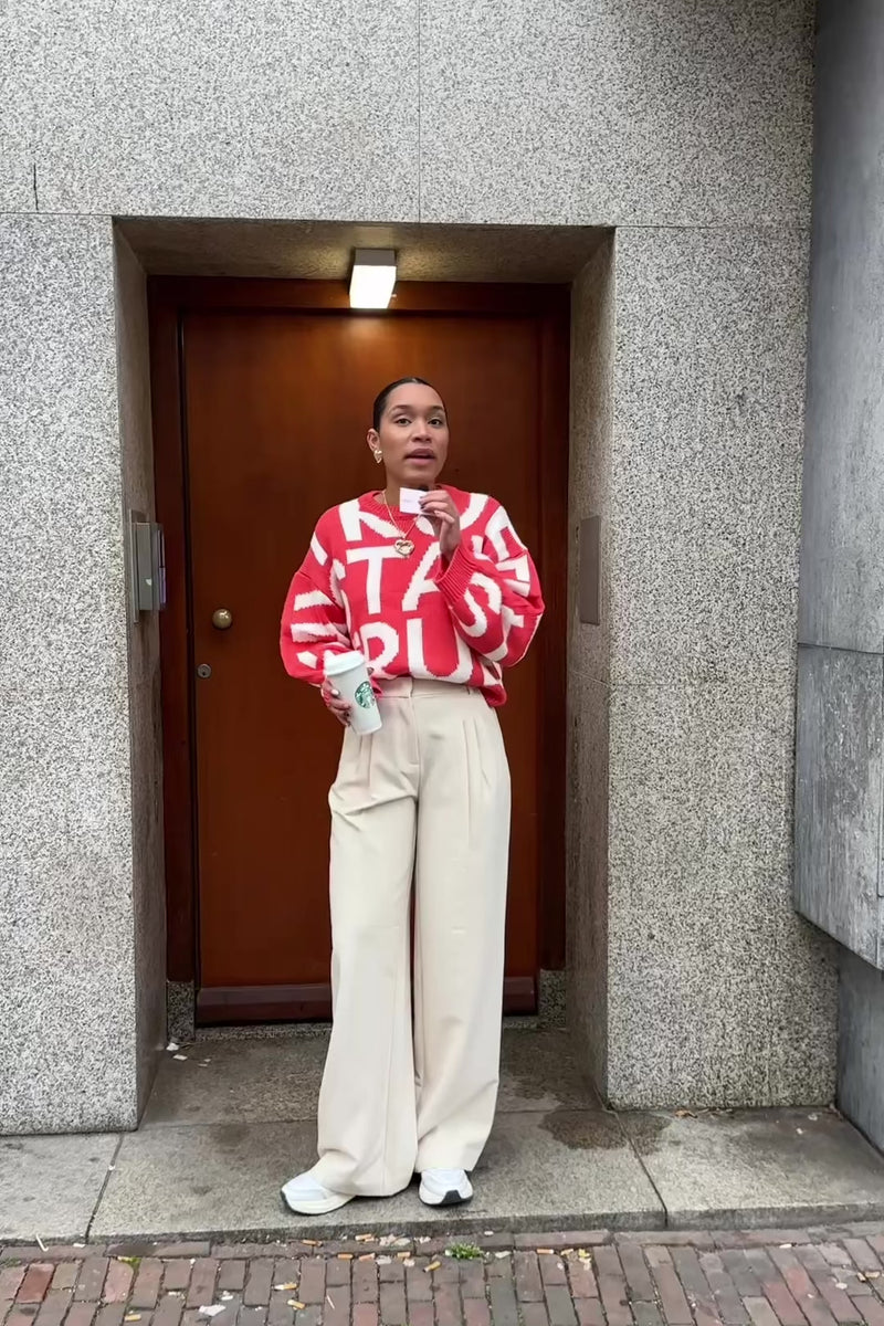 De Protest Trui van CKS is een wollige, rode statement trui met in grote witte letters ‘stay true’ over de hele voorkant. De zachte stof en relaxte fit maken ’m comfort meets attitude. Bold, warm en heerlijk uitgesproken.