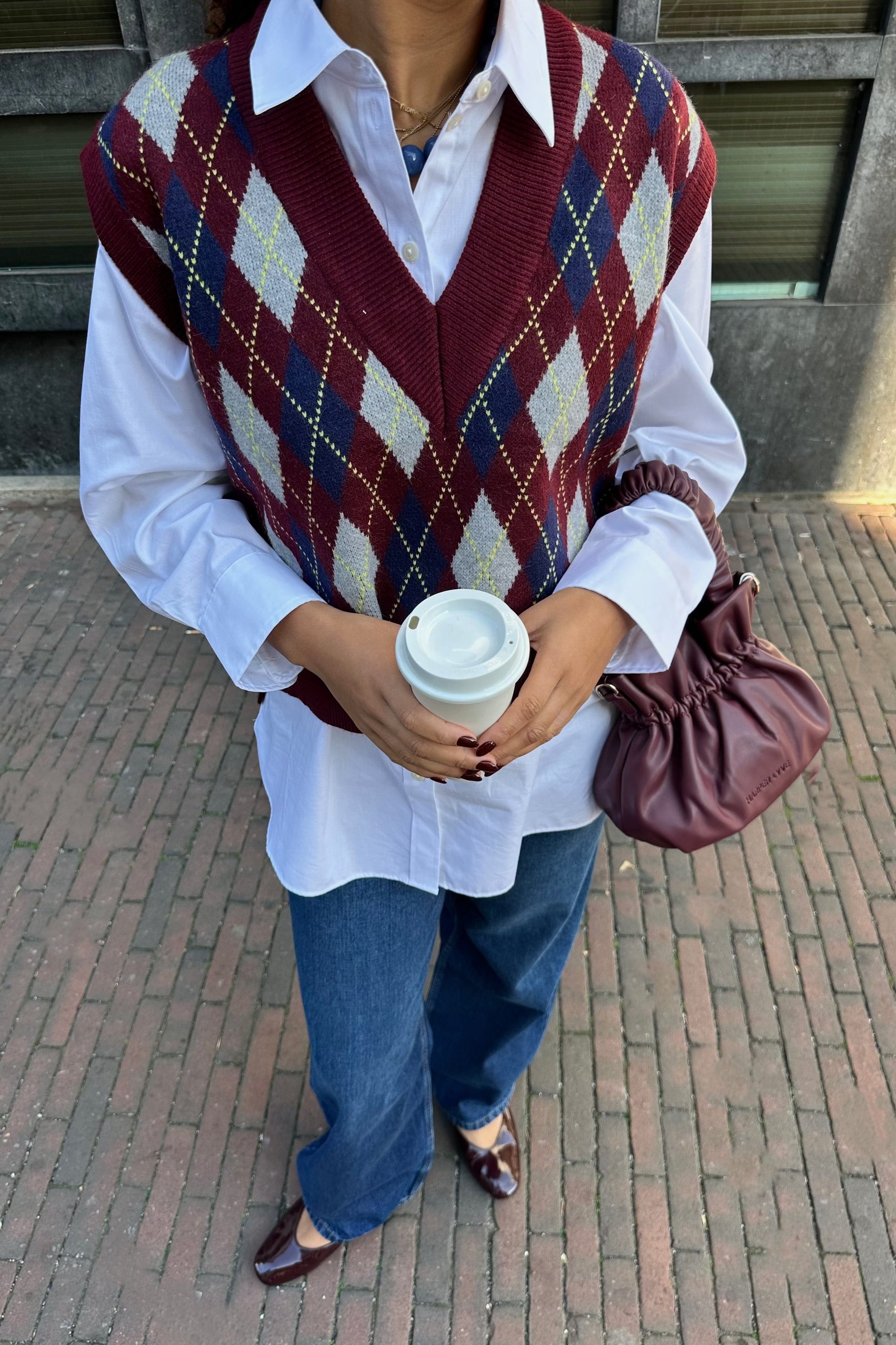 De RowCC Check Spencer van Co'Couture is een spencer met een ruitpatroon in bordeaux, grijs en donkerblauw. Afgewerkt met een subtiele groene streep erdoor voor extra diepte. Stoer, stijlvol en perfect voor layering.