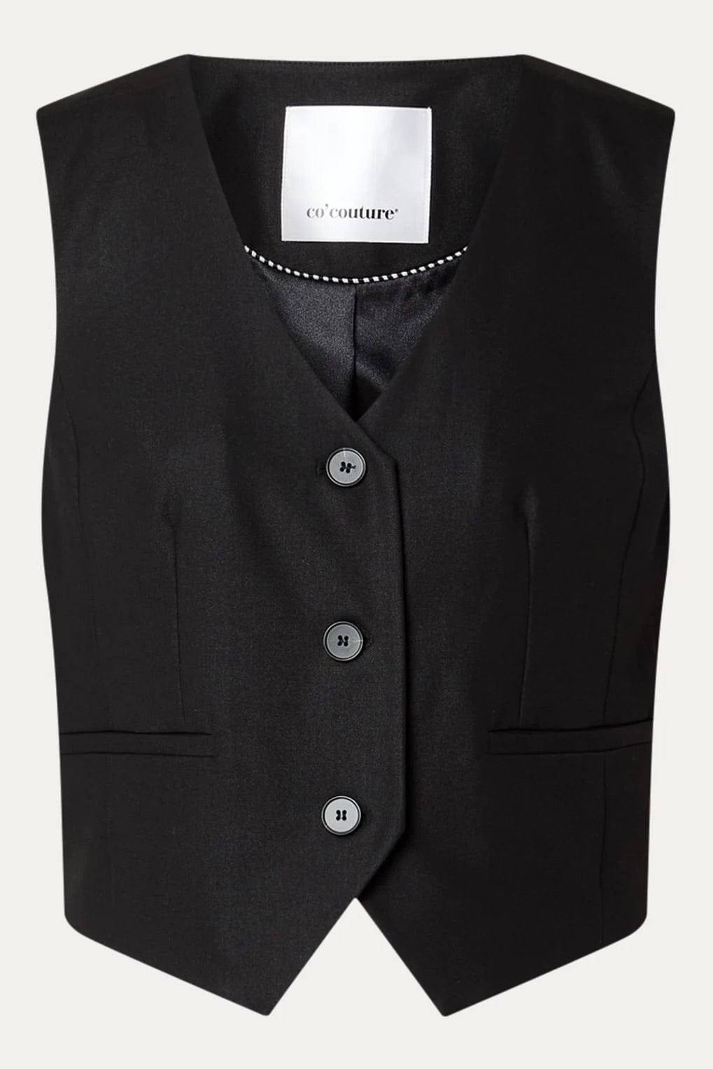 De SibelleCC Open Back Gilet - Zwart van Co’Couture is een moderne twist op het klassieke gilet. Dit zwarte model heeft een tijdloze V-hals met knoopsluiting aan de voorkant en een verrassend open rugdetail met verstelbaar riempje.