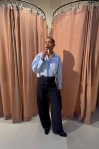 De Sophie Gestreepte Blouse van Haute L’Amitié is een lichtblauwe gestreepte blouse met een reverskraag en klassieke knoopsluiting. De wijde mouwen geven ’m een losse, nonchalante fit met een elegante uitstraling. Perfect op een strakke pantalon of juist stoer op een denim met een statement riem.